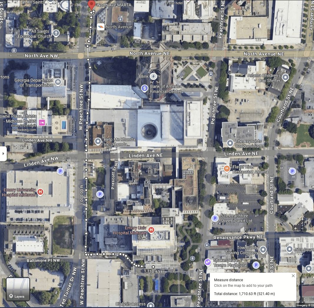 Midtown--RED & GOLD LINES--0.4 mile / 9 min. walk from Atlanta Marriott hotel.